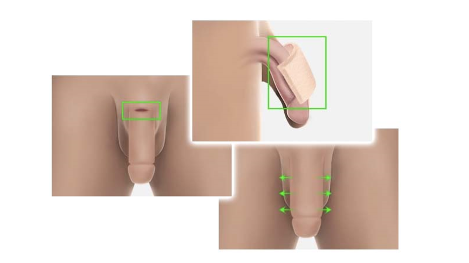 إذا كان هناك جلد زائد بين الخصيتين والقضيب يسبب ظهورًا قصيرًا للقضيب، فيمكن قطع هذا الجلد الزائد في نفس الجلسة لتحقيق مزيد من الطول للقضيب.